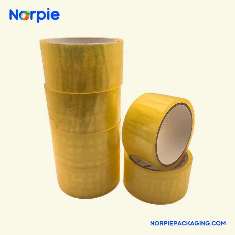 A Norpie® produz fita de embalagem amarela clara usando filme BOPP premium como material de base, revestido com adesivo acrílico sensível à pressão à base de água ecologicamente correto. O produto apresenta espessura de 0,048 mm, aderência inicial de pelo menos esfera de aço 12# e tempo de retenção de aderência superior a 20 horas, oferecendo excelente desempenho de colagem e benefícios ambientais. O adesivo à base de água não é tóxico e é inodoro, com teor de VOC muito abaixo dos padrões nacionais e é adequado para uso em temperaturas que variam de -5°C a 50°C.